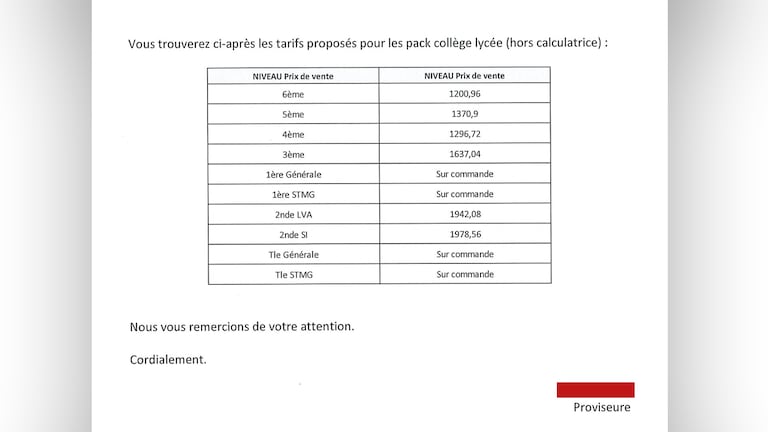 Une école privée vend les manuels et fournitures scolaires sous forme de pack directement aux familles