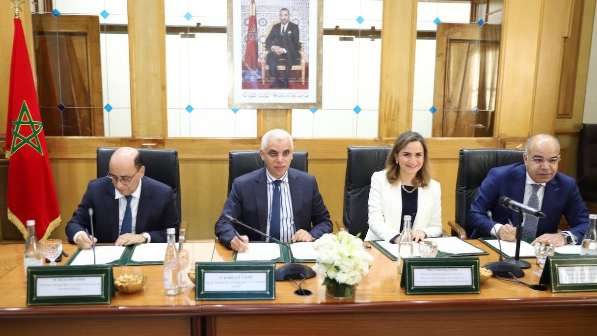 Khalid Aït Taleb, ministre de la Santé et de la Protection sociale, Ghita Mezzour, ministre déléguée chargée de la Transition numérique et de la Réforme de l’administration, Hassan Boubrik, directeur général de la Caisse nationale de sécurité sociale (CNSS), et Mohamed Drissi Melyani, directeur général de l’Agence de développement du digital (ADD) ont procédé, vendredi 2 février, à la signature d’une convention-cadre de partenariat, portant sur la mutualisation des efforts pour déployer le dossier médical partagé et la feuille de soins électronique dans les établissements de santé et les cabinets médicaux.