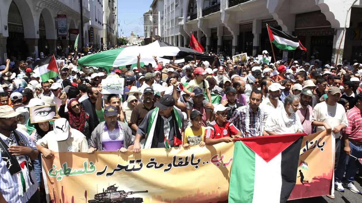 Les manifestants, drapeaux marocain et palestinien en main, ont fustigé Israël, en faisant endosser "la responsabilité" du drame palestinien aux Etats-Unis et aux régimes arabes. Le patron du Hamas, Khaled Mechaal, s'est adressé depuis Qatar aux manifestants marocains, remerciant le Maroc et son peuple pour leur soutien indéfectible à la cause palestinienne. Lors de la marche, les manifestants ont scandé des propos appelant à la libération de la Palestine. "Le peuple réclame la libération de la Palestine. Gaza est le symbole de la fierté. Non à la normalisation avec l'entité sioniste", ont scandé les manifestants, appelant à la "criminalisation de la normalisation". Un manifestant brandissait un portait d'enfant sur lequel était écrit: "I'm just a child. Please stop Israël", alors que d'autres manifestants scandaient à l'unisson "Mort à Israël". Salaheddine Mezouar, chef de la diplomatie, a condamné les "crimes" d'Israël, rappelant les décisions prises par le roi Mohammed VI, président du Comité islamique d'Al Qods, en faveur de la Palestine.