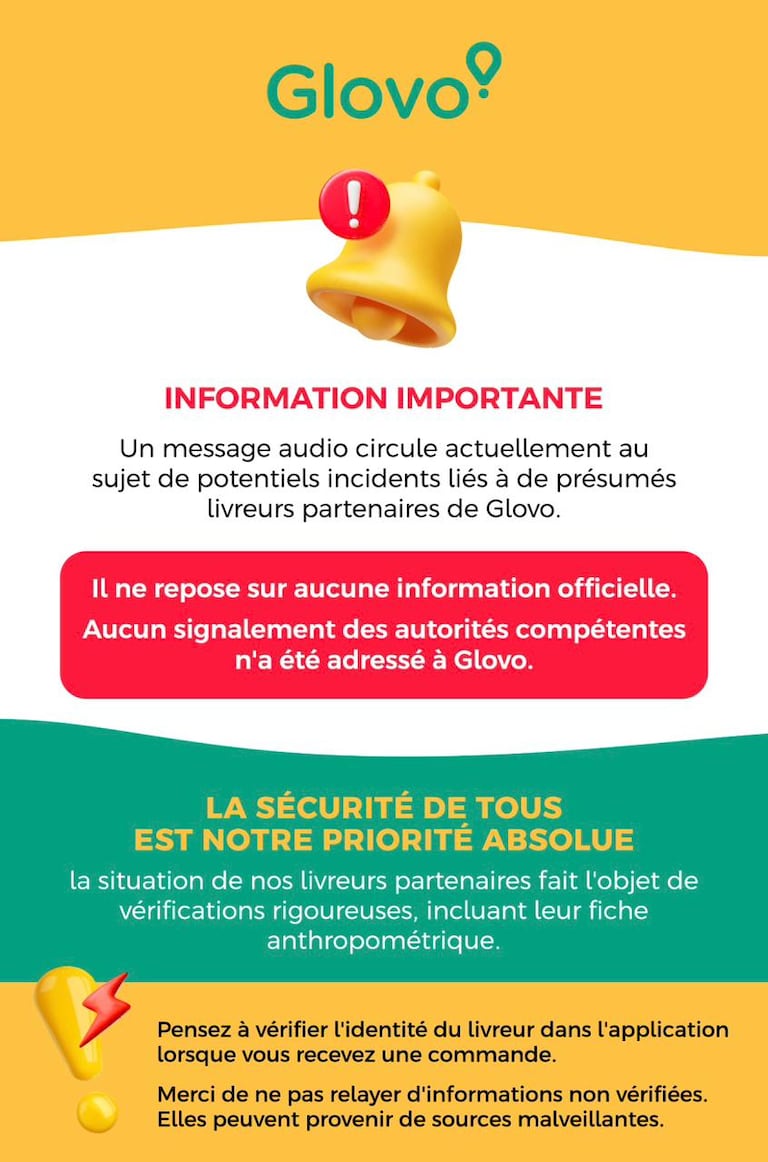 À l’heure où nous mettions en ligne, Glovo a publié un message sur les réseaux sociaux, affirmant que ces allégations ne reposent sur aucune information officielle et qu’aucun signalement des autorités compétentes ne lui a été transmis.