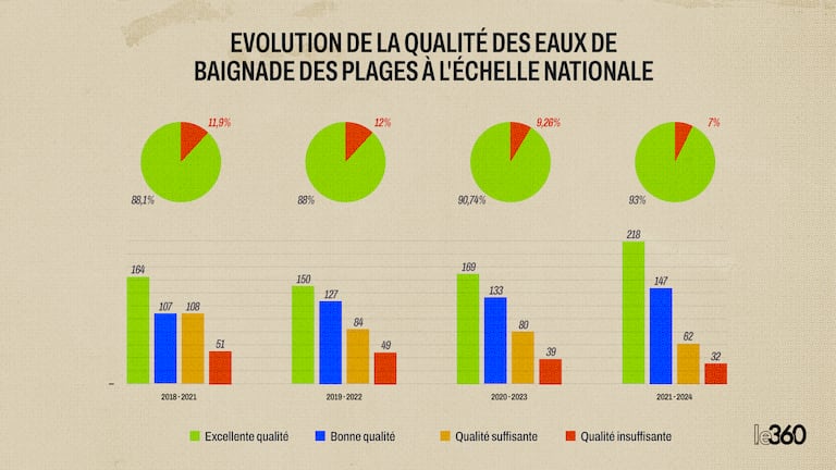 Ce rapport, élaboré dans le cadre du Programme national de surveillance de la qualité des eaux de baignade et du sable, témoigne d’une progression significative en matière de suivi environnemental. Il couvre 199 plages, contre seulement 79 en 2004, soit une augmentation de près de 152% du nombre de sites surveillés.