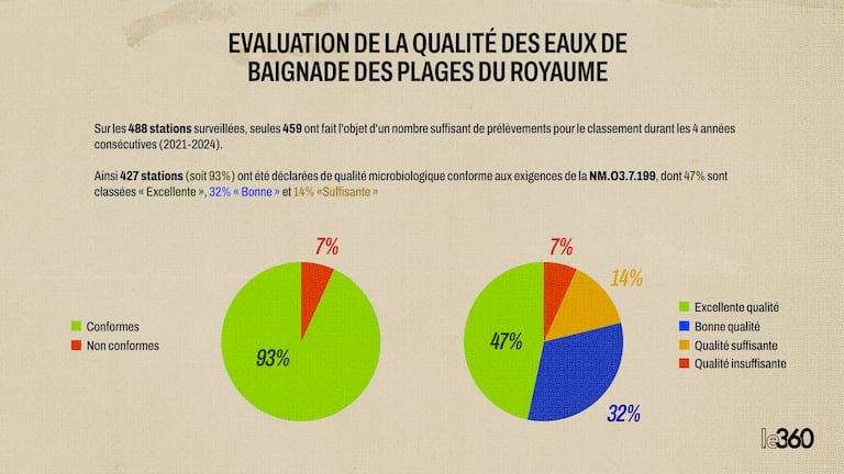 À noter que l’évaluation et le classement des eaux de baignade se fait conformément à la norme marocaine NM 03.7.199, progressivement mise en œuvre depuis 2014 et généralisée à partir de 2019 à l’ensemble des plages répondant aux critères de classification.