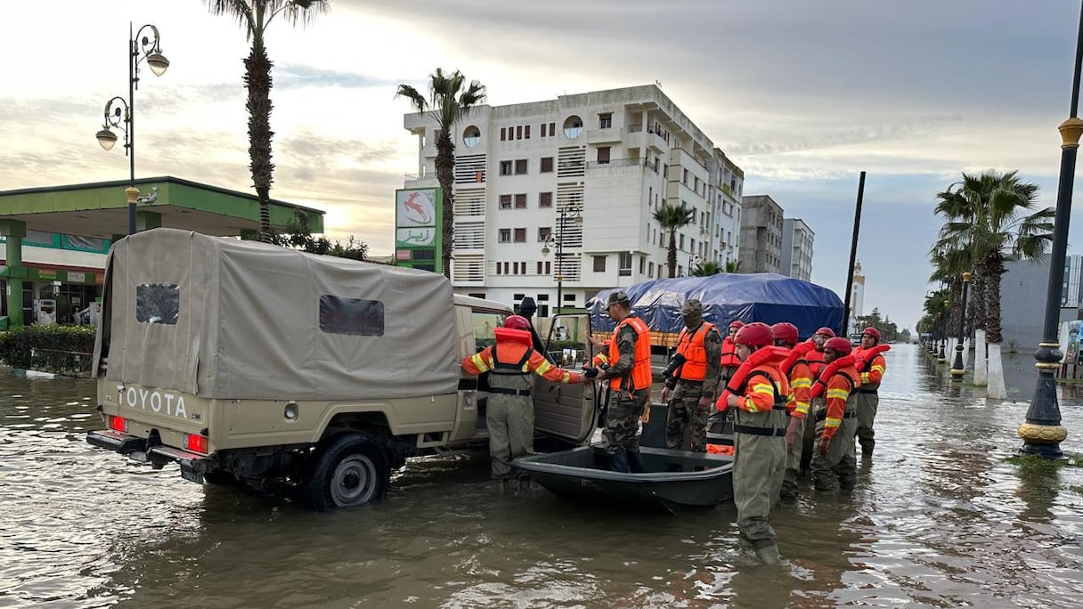 À Ksar El Kébir, les Forces armées royales continuent leurs opérations de sauvetage (S.Kadry/Le360).