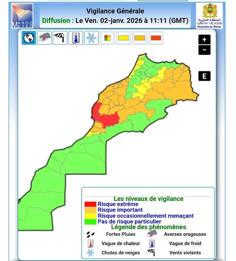 Présidée par le gouverneur de la province d’Essaouira, Mohammed Rachid, cette réunion de coordination a été consacrée à l’évaluation de la situation météorologique actuelle et au renforcement de la coordination entre les différents intervenants afin d’anticiper et de gérer les risques potentiels liés aux vents violents, à la forte houle et aux fortes précipitations prévues vendredi et samedi dans cette partie du territoire national.