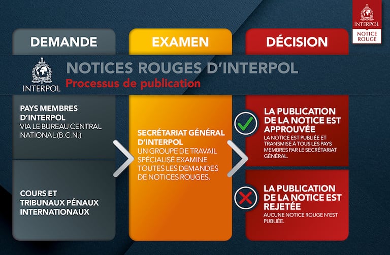 Pour Interpol, l’importance des notices rouges tient au fait qu’elles diffusent instantanément une alerte auprès de toutes les polices des pays membres lorsqu’un fugitif est recherché à l’échelle internationale. Ce système permet de retrouver et de traduire les fugitifs en justice, parfois même plusieurs années après la commission des faits qui leur sont reprochés.
