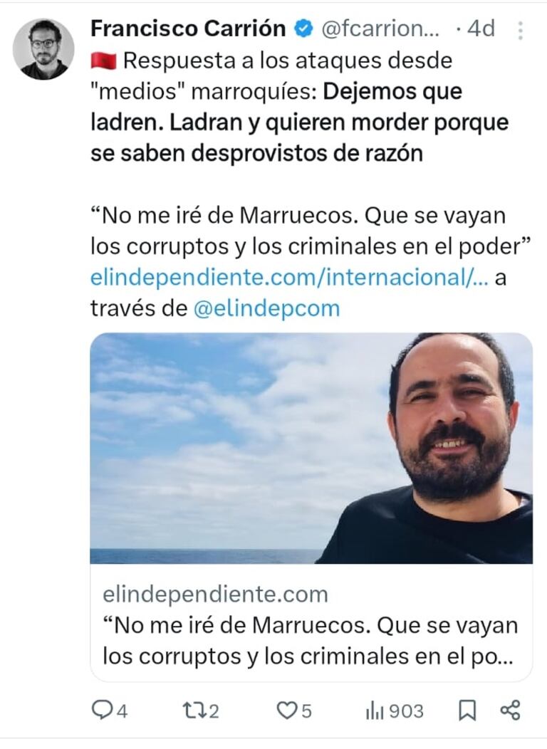 De nombreux médias marocains ont commenté cet entretien. Cependant, poursuit la Commission provisoire, «Francisco Carrión a qualifié ces commentaires de simples “aboiements”, ajoutant que les journalistes marocains ayant rédigé ces commentaires étaient des “chiens cherchant à mordre”».