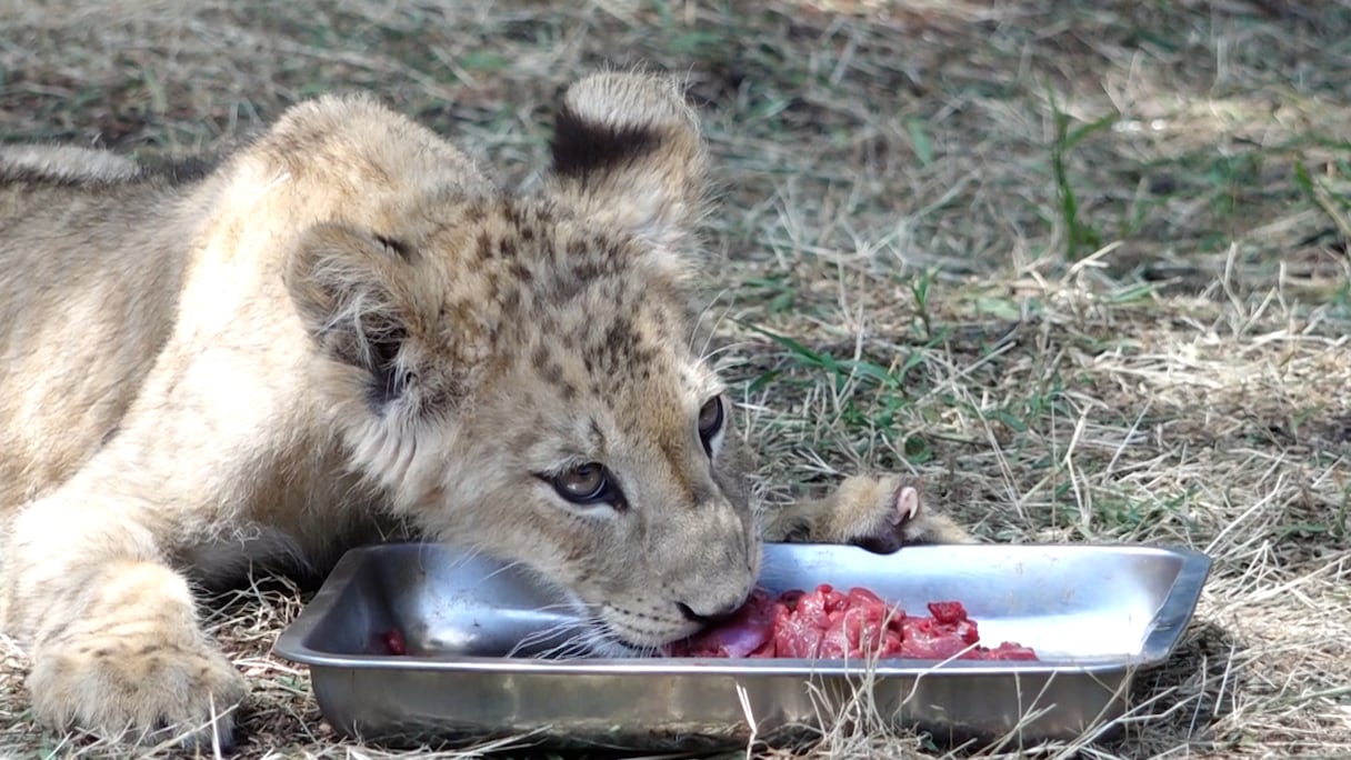 Le360 a pu pénétrer à l’intérieur de l’enclos pour filmer la jeune lioncelle de l’Atlas, aujourd’hui âgée de cinq mois. Depuis sa naissance, elle bénéficie d’un suivi constant assuré par Walid Zeqaqui, technicien dévoué, qui veille sur elle jour et nuit.