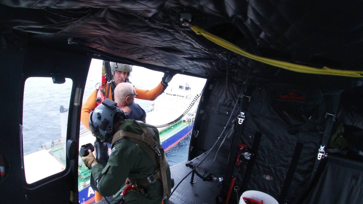 Le même jour, la Marine royale a reçu un second signalement émanant du même centre, faisant état d’un homme dans un état critique à bord d’un navire de commerce baptisé Kochiwi, qui se trouvait à environ 75 kilomètres à l’ouest de Jorf Lasfar. Une opération d’évacuation héliportée a alors été menée avec l’envoi d’un hélicoptère de la Marine royale. Le patient a été évacué en urgence et transféré vers l’Hôpital universitaire international Cheikh Khalifa à Casablanca afin d’y recevoir les traitements requis.