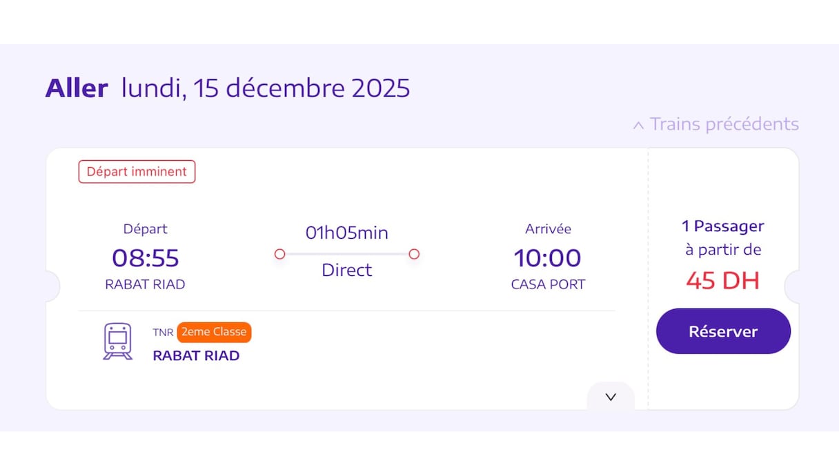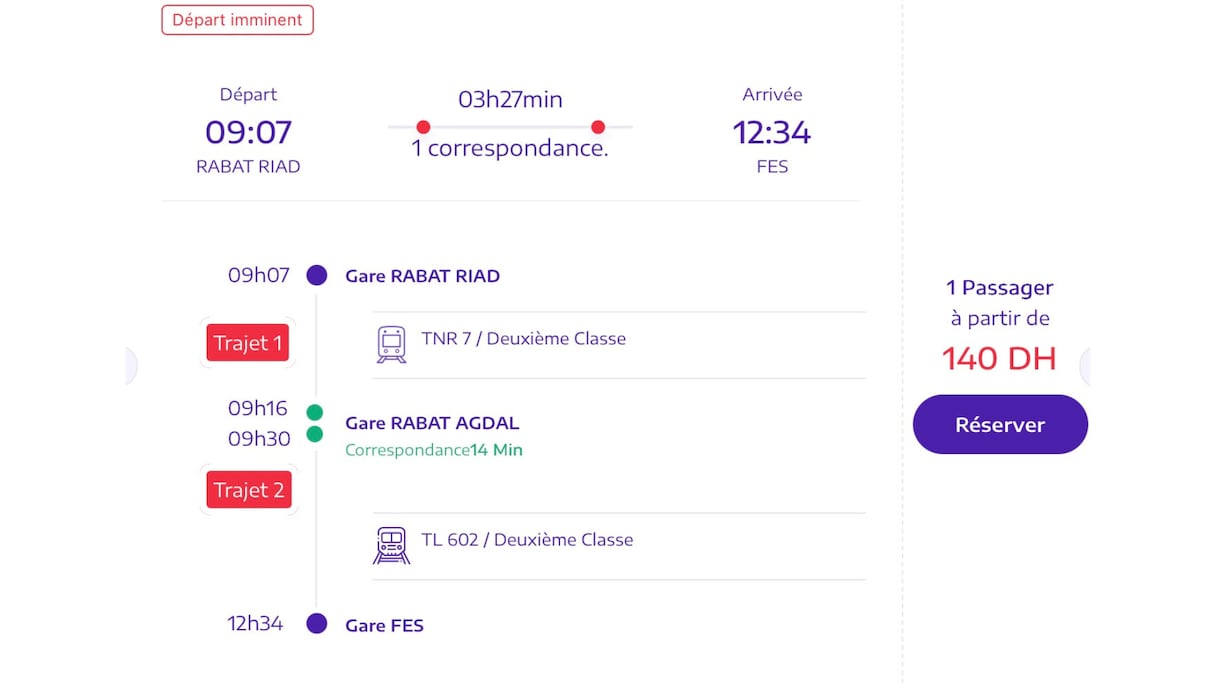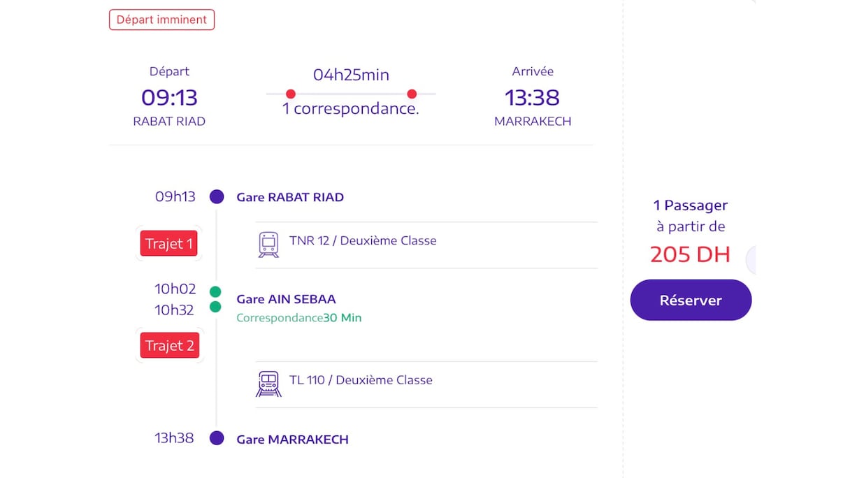 Le site officiel de l’ONCF permet déjà, ce lundi matin, l’achat de billets au départ et à destination de la nouvelle gare Rabat-Ryad.