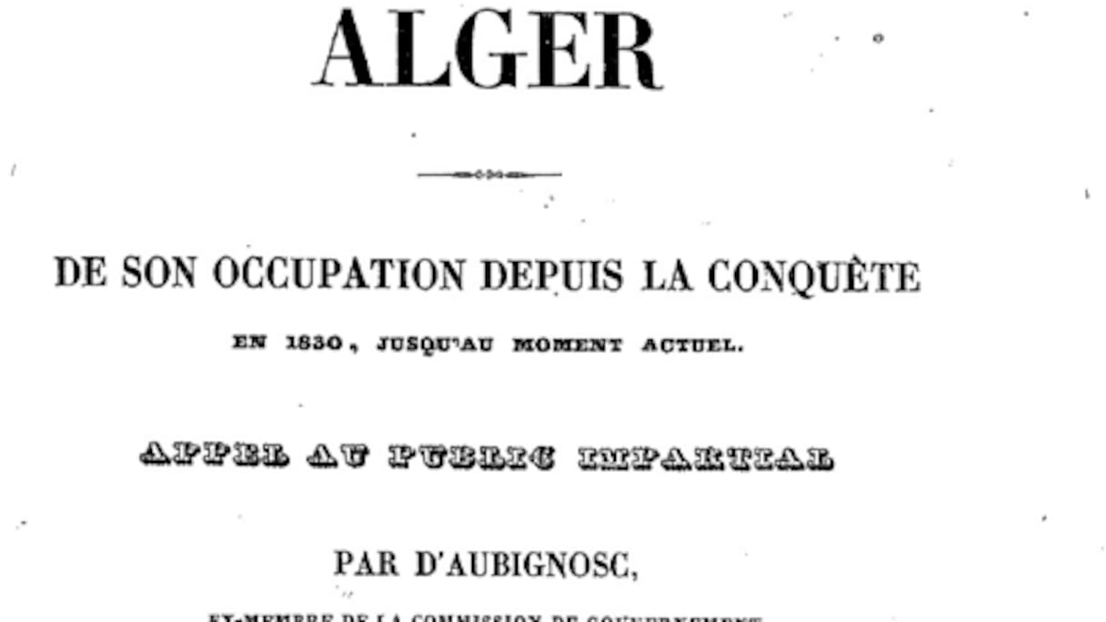 Sur cette milice turque, un autre témoignage important émane en 1836 du lieutenant général de police d’Alger Louis-Philibert d’Aubignosc, décrivant la régence comme un no man’s land de droit où les populations sont opprimées: «La population de l’ex-régence ne formait pas un tout homogène au moment de l’invasion française (…) Les Turcs propriétaires viagers de la souveraineté du pays perdirent cet apanage en perdant le pouvoir. Entre 2.000 à 2.500 embarquèrent depuis Alger pour être rendus à l’Asie d’où ils étaient venus, et il en resta un peu moins épars dans les autres villes. Les Turcs, en vidant le sol algérien, qu’ils possédaient en conquérants depuis près de trois siècles, emportaient tous les éléments du régime militaire qu’ils y avaient fait régner avec eux» (pp.14-15, «Alger. De son occupation depuis la conquête en 1830, jusqu’au moment actuel», Archives réserve des livres rares). D’Aubignosc, tout comme Plée, rapporte que la France s’est présentée «en ennemie des Turcs et en amie des populations opprimées par leur domination. On venait affranchir celles-ci» (p.15). Ce point de vue est insuffisamment connu. Selon les archives, la France a mené une campagne de communication auprès des Algérois, «des proclamations en langue arabe répandues par toutes les voies leur annonçaient notre prise de la ville, et en les invitant à rester neutres pendant les hostilités» (p.15).