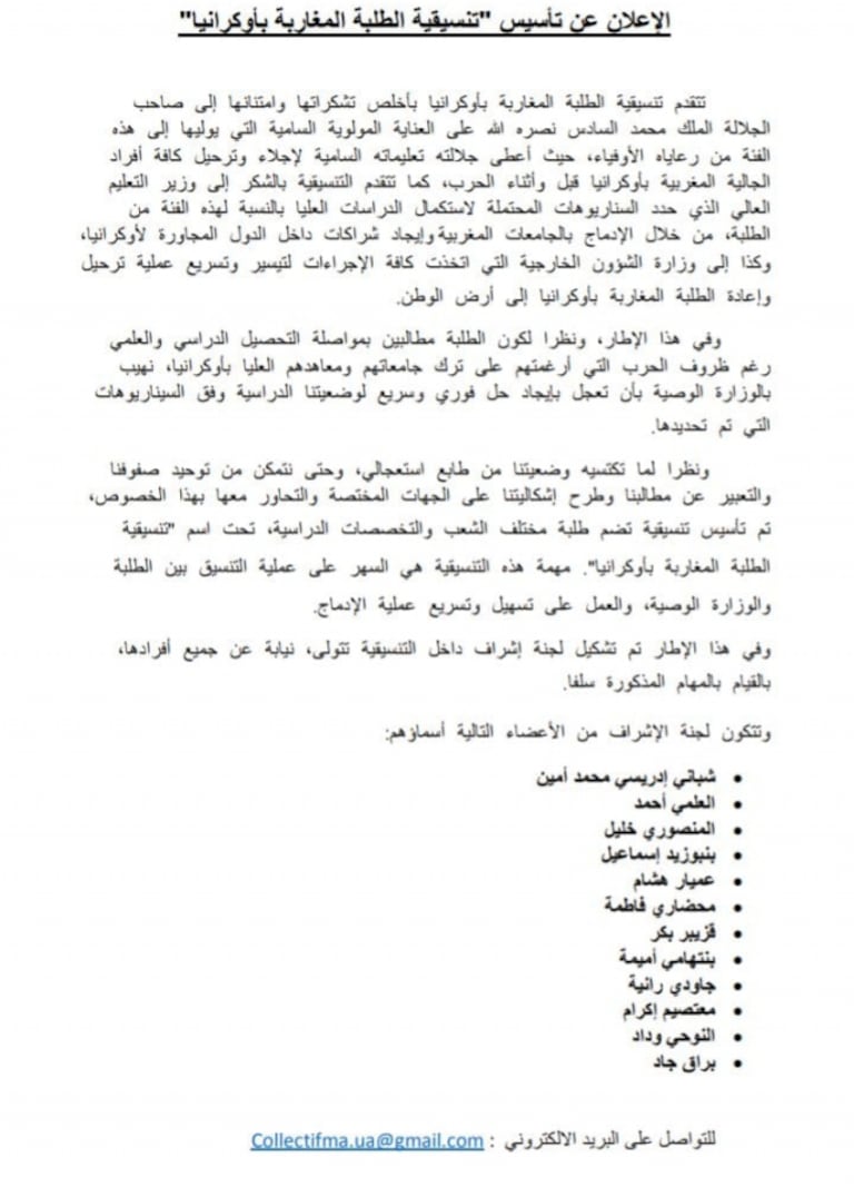 © Copyright : collectif des étudiants marocains en Ukraine