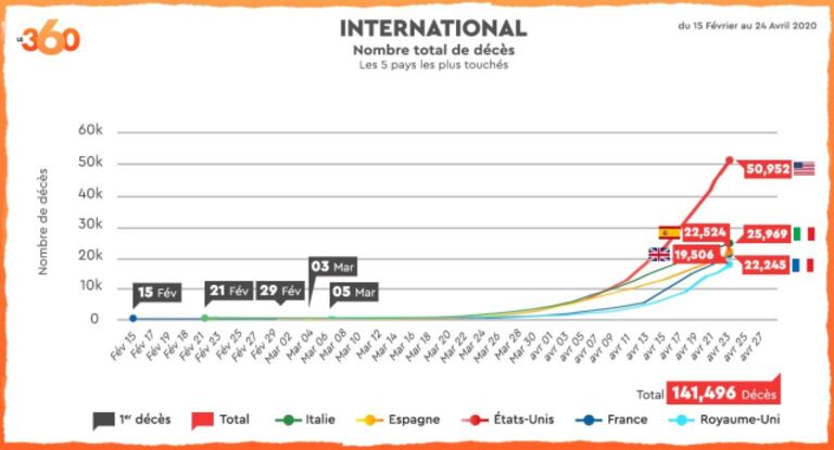 Les Etats-Unis enregistrent l’un des pires bilans humains enregistrés en 24 heures, 3 176 morts ont été recensés ce jeudi soir. Le nouveau coronavirus a fait en tout près de 50.000 (49.963) morts aux États-Unis.