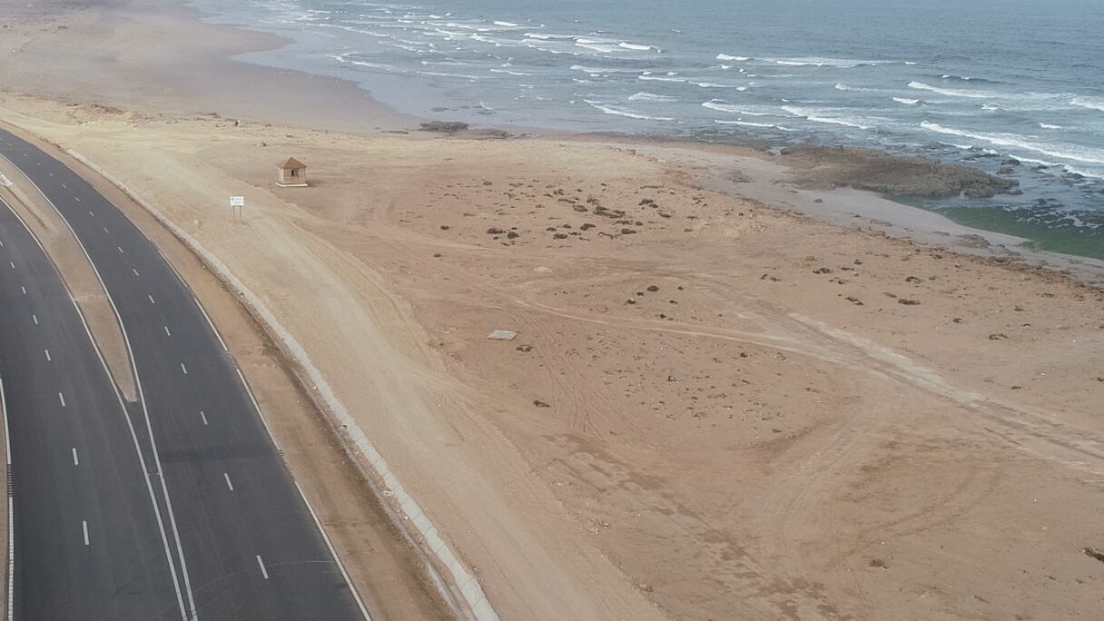 Vue d'un tronçon de la voie express Tiznit-Dakhla, qui s'étend sur une distance de 1.055 km. (H.Yara/Le360) . يارى حمدي