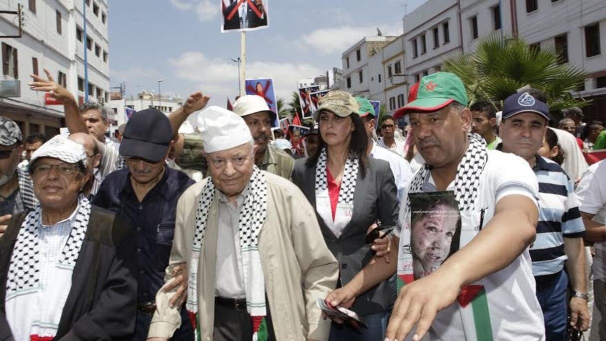 Mohamed Bensaïd Ait Idder, 89 ans, ancien résistant et icône de l'extrême gauche marocaine, a pris part, ce dimanche après-midi à Casablanca, à une marche de solidarité avec le peuple palestinien. Cette manifestation a été organisée par un collectif d'acteurs associatifs.