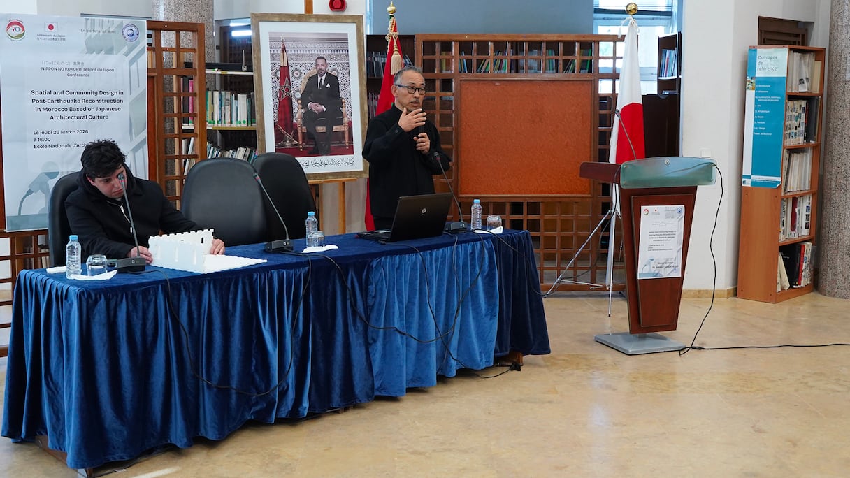 Ce jeudi 26 mars, la bibliothèque de l’École nationale d’architecture de Rabat n’a pas suffi à contenir l’affluence. Très vite, des chaises ont été ajoutées à la hâte pour accueillir les retardataires, tandis que d’autres sont restés debout, adossés aux murs, attentifs au moindre mot. L’intervention de Hiroto Kobayashi, figure reconnue de l’architecture japonaise, a suscité un intérêt dépassant largement le cadre académique.