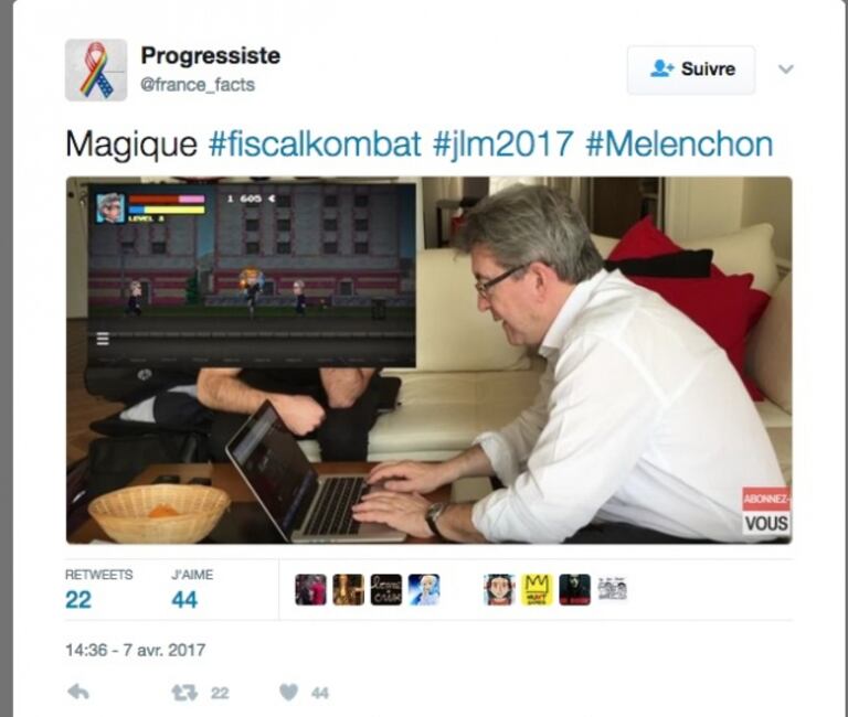 Une présidentielle pour les "gamers"La campagne présidentielle française intéresse les Marocains, surtout lorsqu'elle devient virtuelle. Jean-Luc Mélenchon, le chef de la France insoumise, lance une expérience inédite. A travers un jeu mobile appelé "fiscal combat", le natif de Tanger passe un message aux fraudeurs fiscaux.
