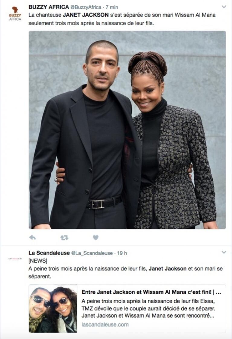 Le divorce à 500 millions de dollarsToujours du côté du pays de l'oncle Sam, les réseaux sociaux se mêlent du divorce de Janet Jackson. Après 5 mois de mariage, elle empoche la coquette somme de 500 millions de dollars.