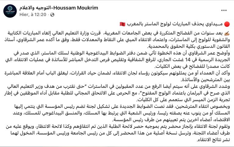 Education: El Midaoui supprime les concours d’accès aux masters, remplacés par une sélection sur dossier