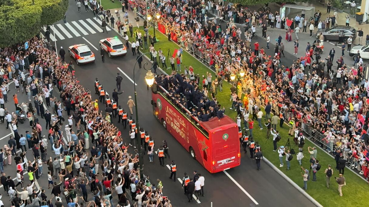 Les 𝗖𝗛𝗔𝗠𝗣𝗜𝗢𝗡𝗦 𝗗𝗨 𝗠𝗢𝗡𝗗𝗘 𝗨𝟮𝟬 ont été accueilli à Rabat par les supporters marocains.