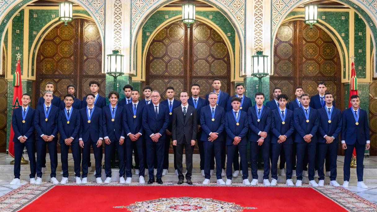 بتعليمات سامية من جلالة الملك، صاحب السمو الملكي ولي العهد الأمير مولاي الحسن يترأس حفلا أقامه جلالته على شرف أعضاء المنتخب الوطني لكرة القدم لأقل من 20 سنة، بطل العالم