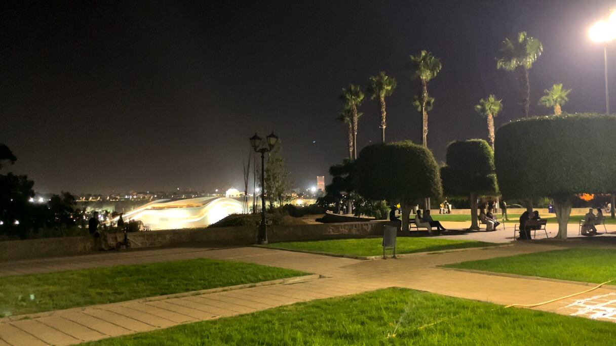 Bien entretenu et surveillé, le jardin, tapissé d’une pelouse et richement arboré, domine une colline qui offre une vue superbe sur le grand théâtre Mohammed VI et l’ensemble de la vallée du Bouregreg.