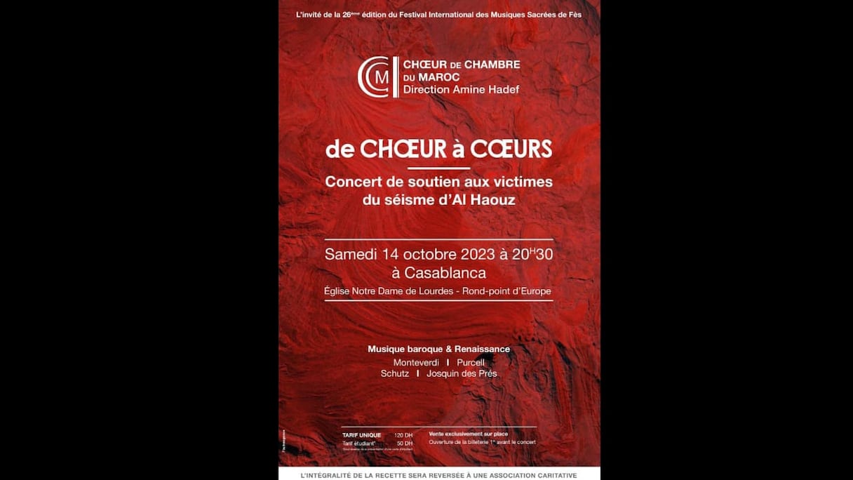 Amine Hadef et les choristes du Chœur de Chambre du Maroc ont décidé de mettre leur sensibilité de musiciens au service de cet hommage, en organisant un concert de soutien, le 14 octobre prochain, à 20h30 à l’église Notre-Dame de Lourdes (rond-point d’Europe à Casablanca).