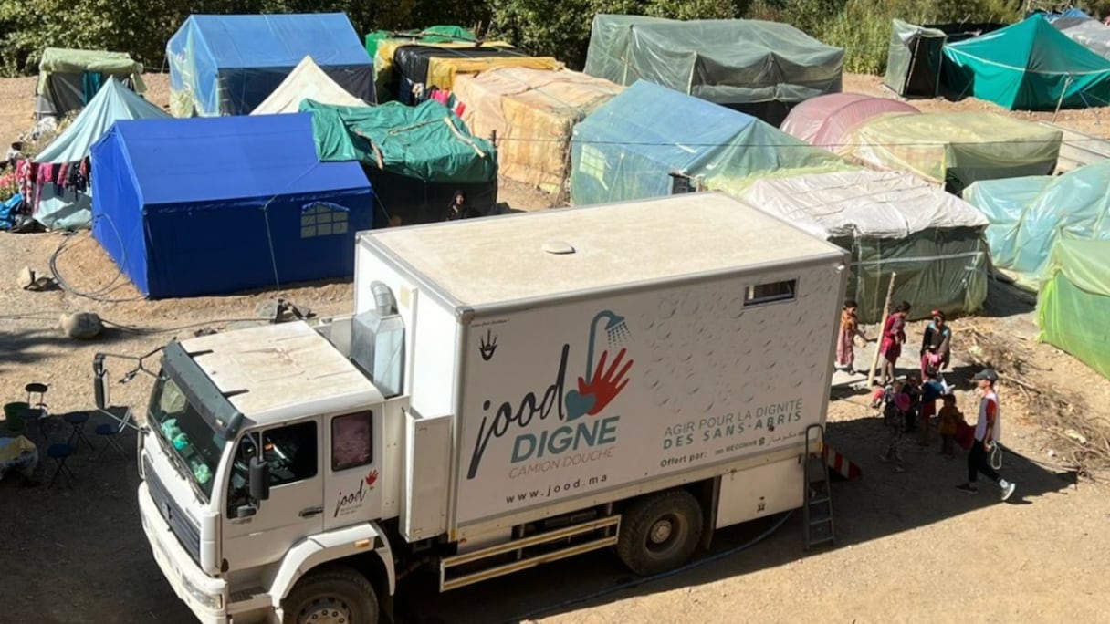 Ahmed, responsable au sein de l’association nous dit: «Nous avons pu équiper trois douars d’Al Haouz de sanitaires et desservir plus de trente douars grâce au camion douche, avec un nombre de bénéficiaires estimé à 80 personnes par jour.» Ce camion douche comporte une citerne d’eau d’une capacité de 2000 litres , un chauffe-eau à gaz, une bouche d’incendie, quatre cabines de douches aménagées de manière à préserver l’intimité des bénéficiaires, avec des positions coiffeurs/barbiers, soins médicaux, hygiène de mains, pieds et buccale ainsi qu’un dressing avec un stock de vêtements neufs.
