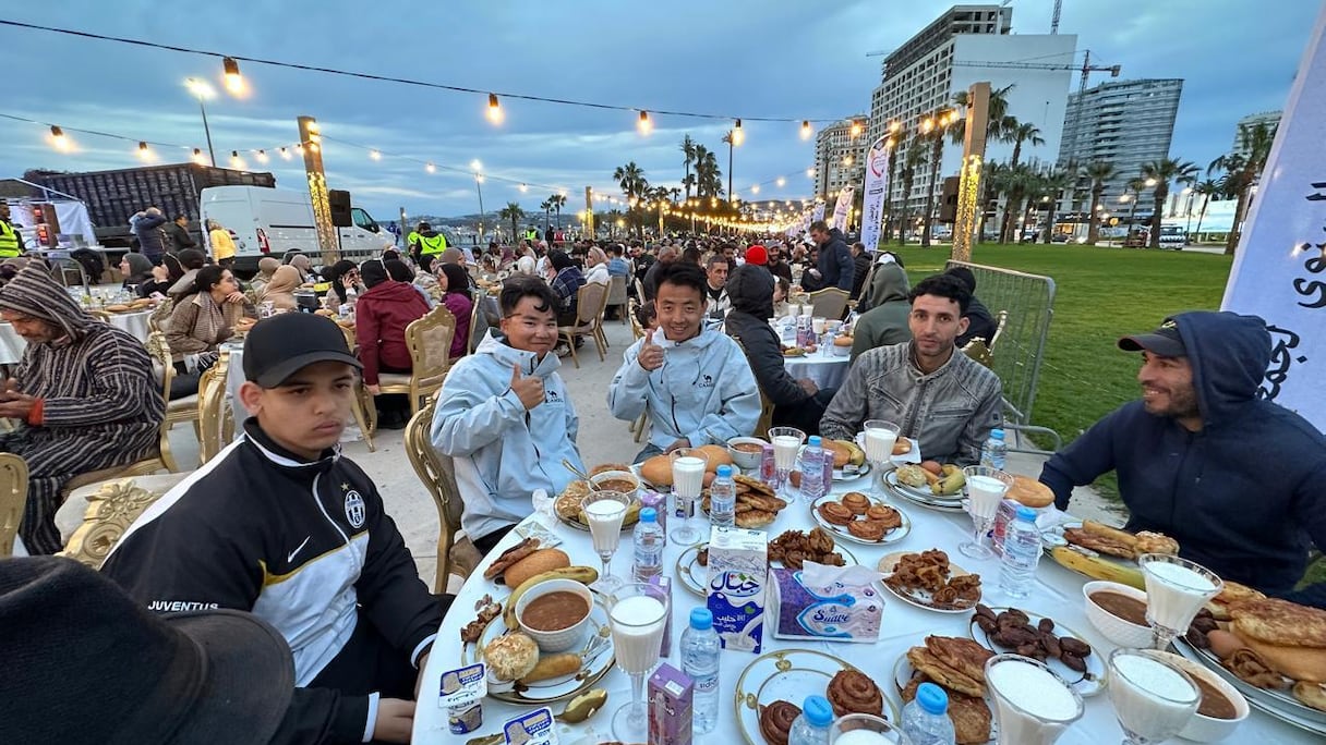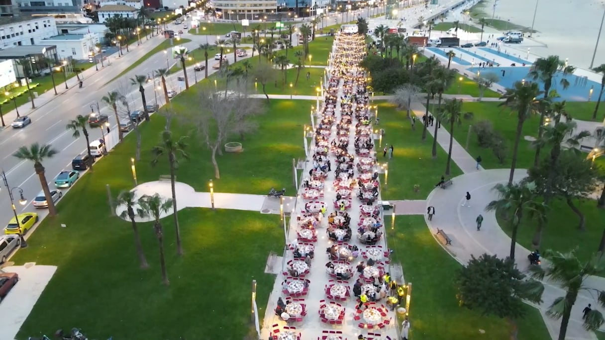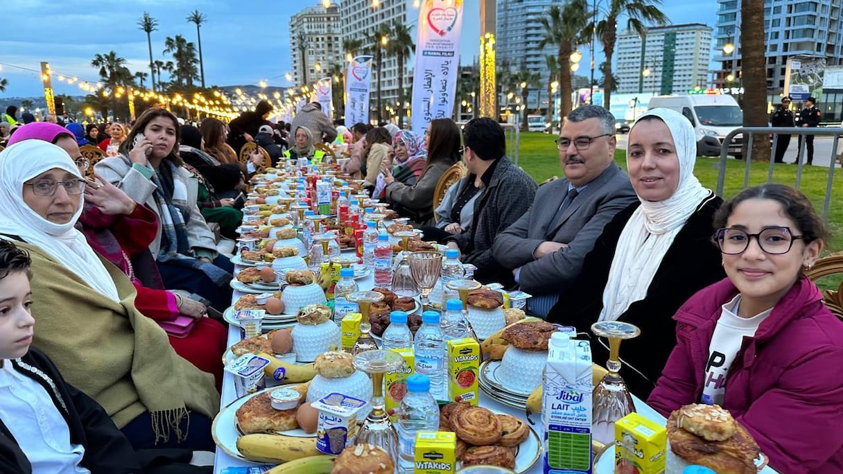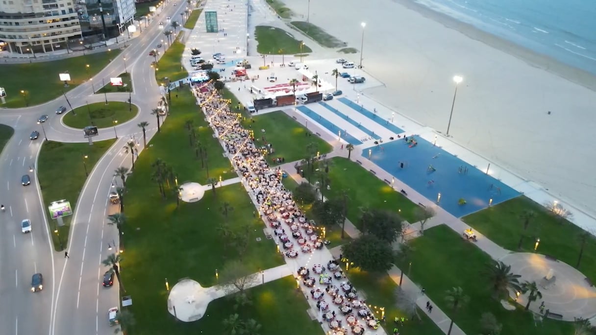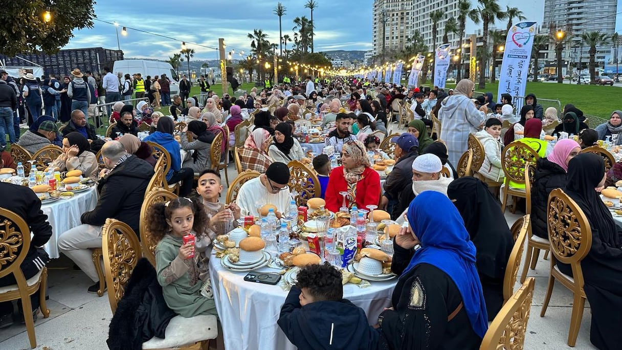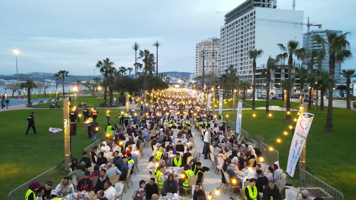 Des milliers de jeuneurs se sont réunis sur la corniche de Malabata à Tanger, formant la plus longue table de ftour du Maroc (S.Kadry/Le360).. Le360