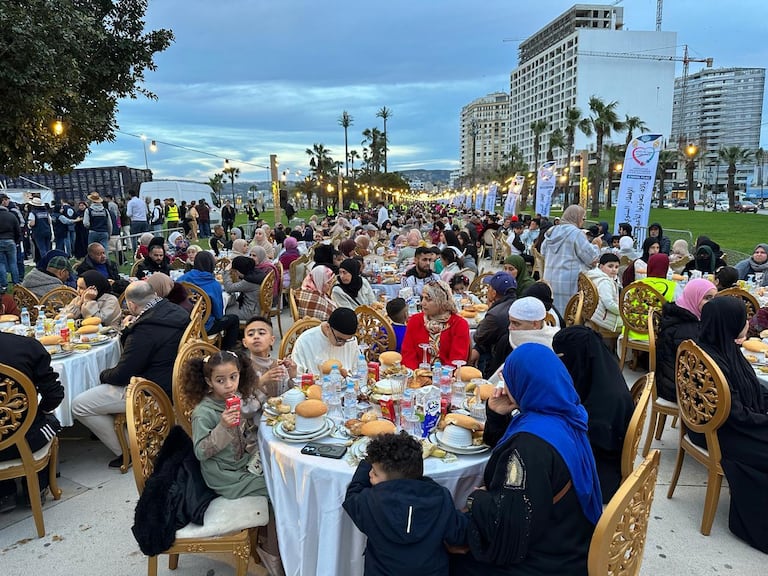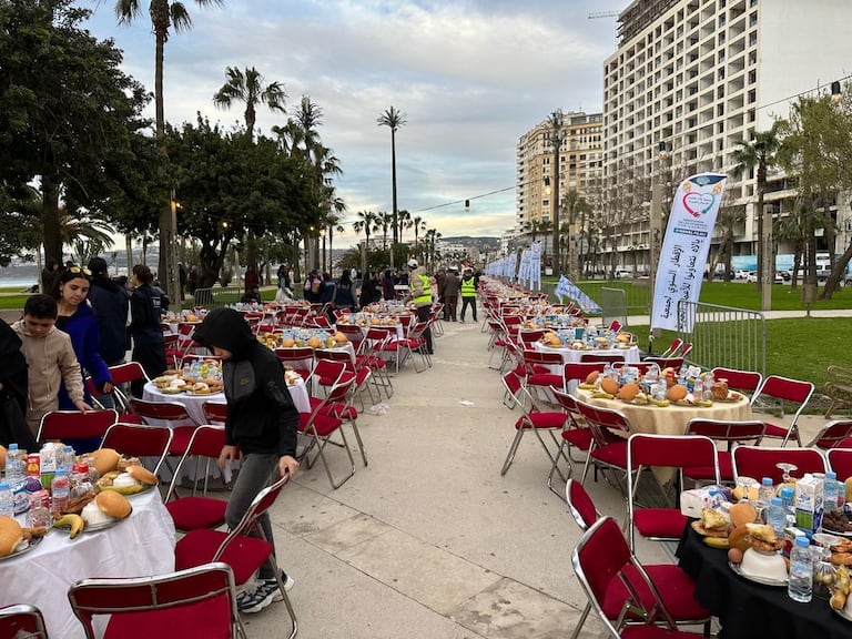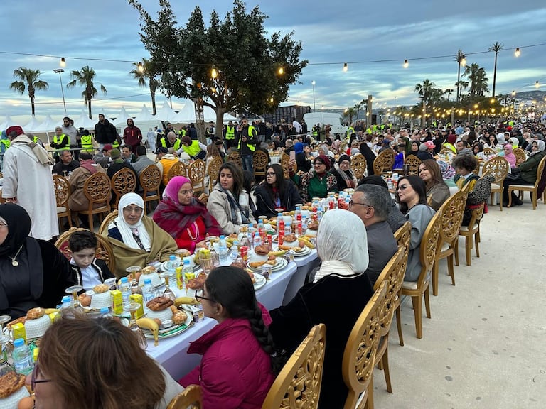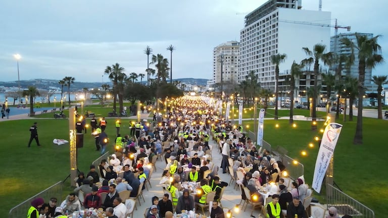 Des milliers de jeuneurs se sont réunis sur la corniche de Malabata à Tanger, formant la plus longue table de ftour du Maroc (S.Kadry/Le360).