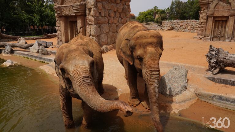 Jana et Praya deux éléphantes originaires de l'Inde et du Sri lanka. (K.Essalak/Le360)