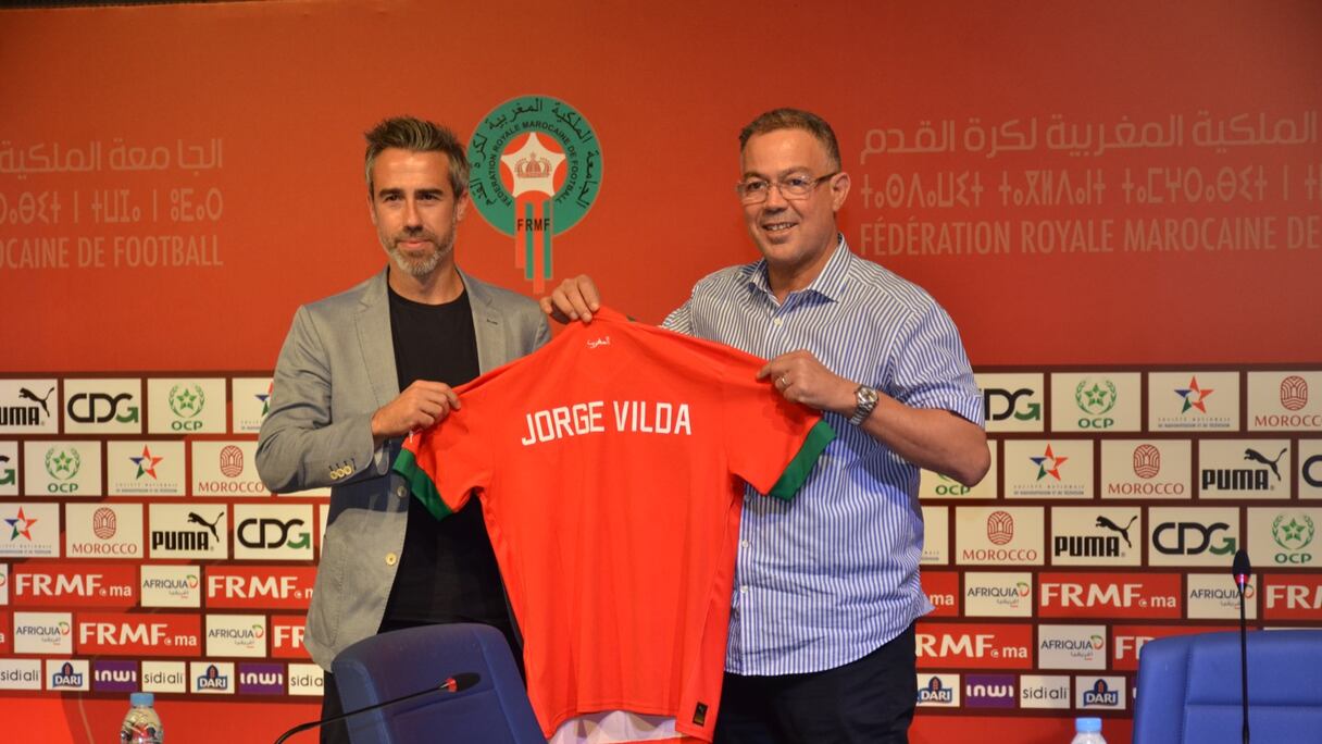 Fouzi Lekjaa, président de la FRMF, et Jorge Vilda Rodriguez, nouveau sélectionneur des Lionnes de l'Atlas.