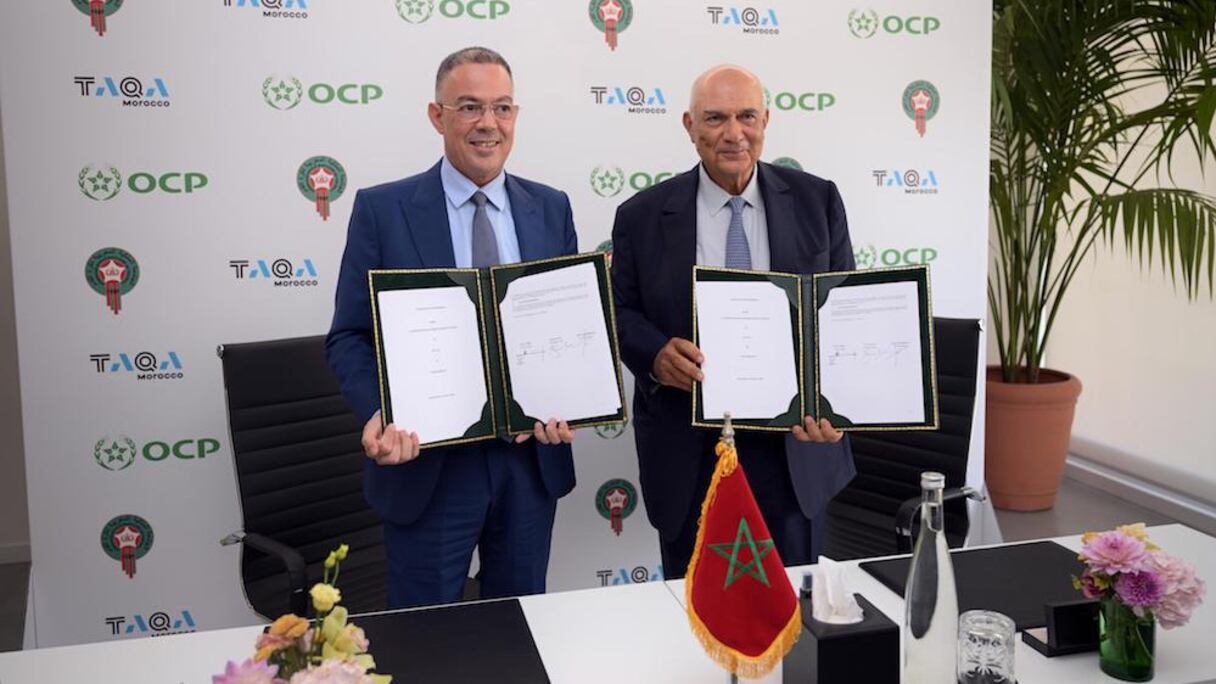 Fouzi Lekjaa, président de la Fédération royale marocaine de football, et Mostafa Terrab, PDG du Groupe OCP.