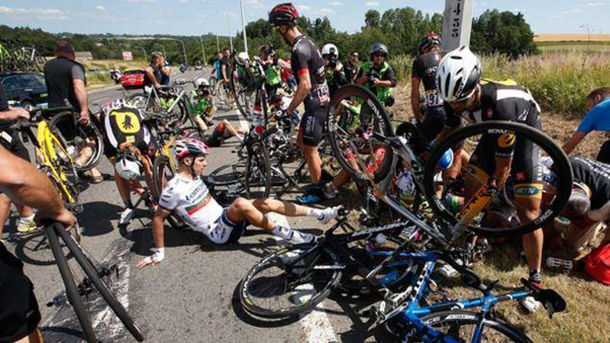 Une grosse chute dans le peloton a perturbé la troisième étape du Tour de France ce lundi. A 58 kilomètres de l'arrivée, les organisateurs ont été contraints de neutraliser temporairement la course face aux dégâts impressionnants engendrés par la chute.