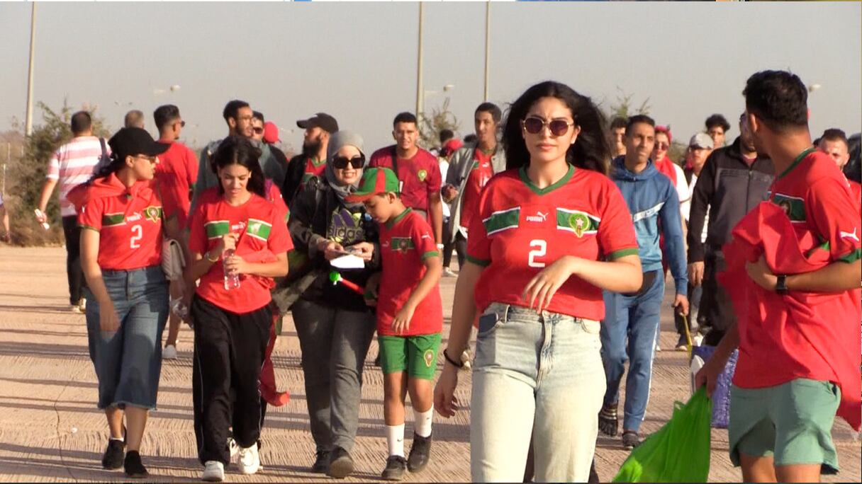 Les supporters des Lions de l'Atlas à Agadir avant Maroc-Liberia, le 17 octobre 2023.
