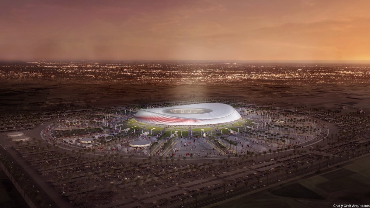 L’ancienne maquette du stade de Casablanca réalisée par le cabinet d'architectes espagnol Cruz Y Ortiz pour la candidature du Maroc à l’organisation du Mondial 2026.