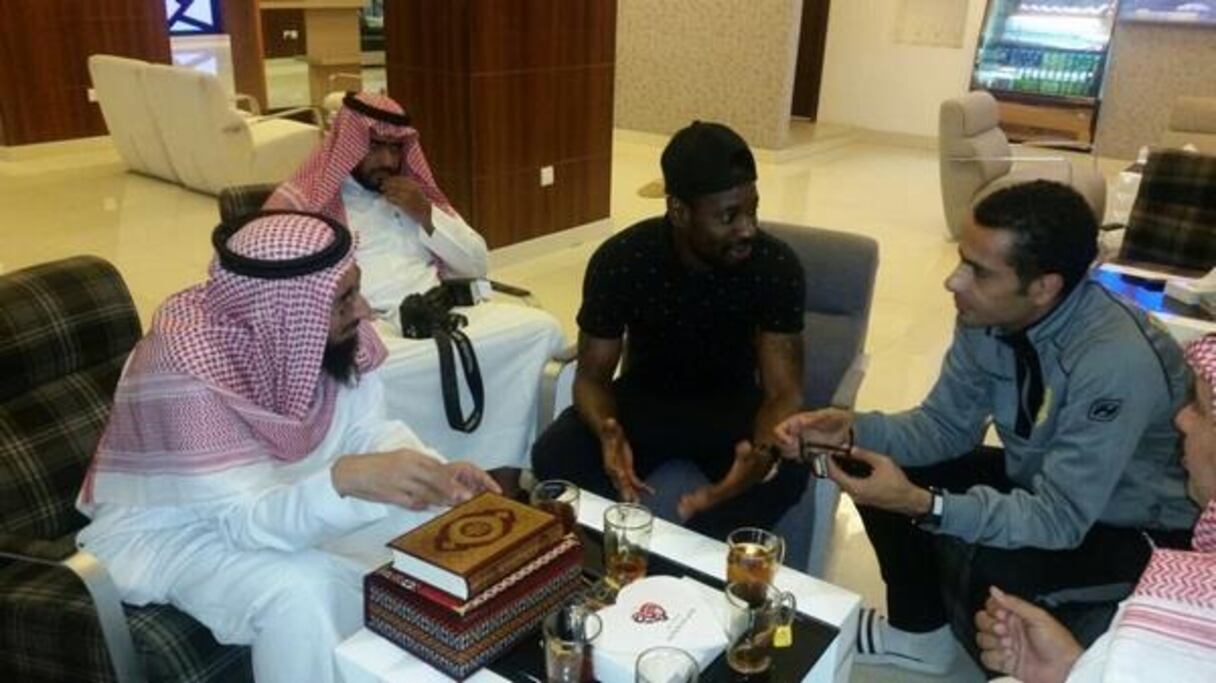 Lys Mouithys n'est pas inconnu aux mordus de la Botola. L'attaquant international congolais s'est notamment distingué avec le Wydad de 2009 à 2013 et avec le Raja en 2014. Depuis, Mouithys a plié bagage pour l'Arabie Saoudite où Al-Qadisiya Al-Khubar l'a accueilli dans son effectif. C'est là-bas que le Congolais a décidé d'embrasser la religion musulmane. Comme le montre ces photos, un imam a converti Lys Mouithys à l'Islam la semaine dernière et ce dernier l'a affiché fièrement sur les réseaux sociaux. Une spiritualité qui devrait le guider vers les chemins des filets qu'il a perdu depuis son départ du Maroc.