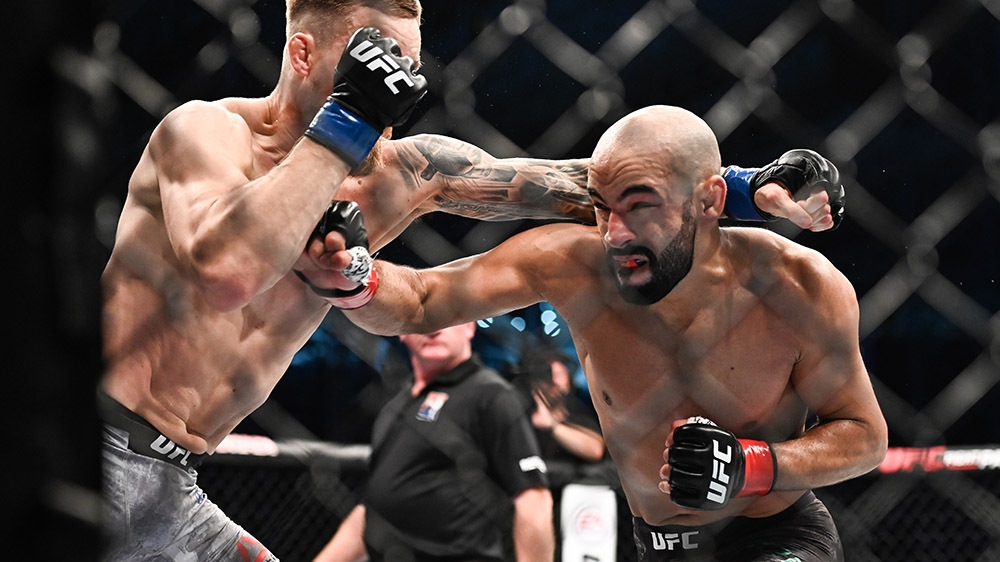 S’appuyant sur sa vitesse et sa grande puissance, Azaitar n’aura eu besoin que d’une minute et 33 secondes lors du premier round pour terrasser son adversaire après une parfaite combinaison de coups de poing.