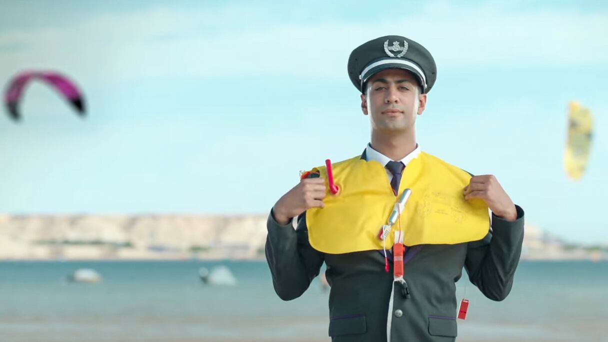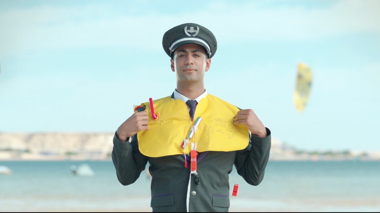 Ainsi, la mdemma (ceinture en or) illustre l’attache de la ceinture de sécurité, la maroquinerie évoque les bagages, le zellige met en avant l’interdiction de fumer et le tissage du tapis symbolise… la mise des smartphones en mode avion. Les masques à oxygène suspendus aux chapeaux traditionnels de Chefchaouen apportent une touche d’originalité et les kitesurfeurs sur la plage de Dakhla servent d’arrière-plan à la consigne du gilet de sauvetage.